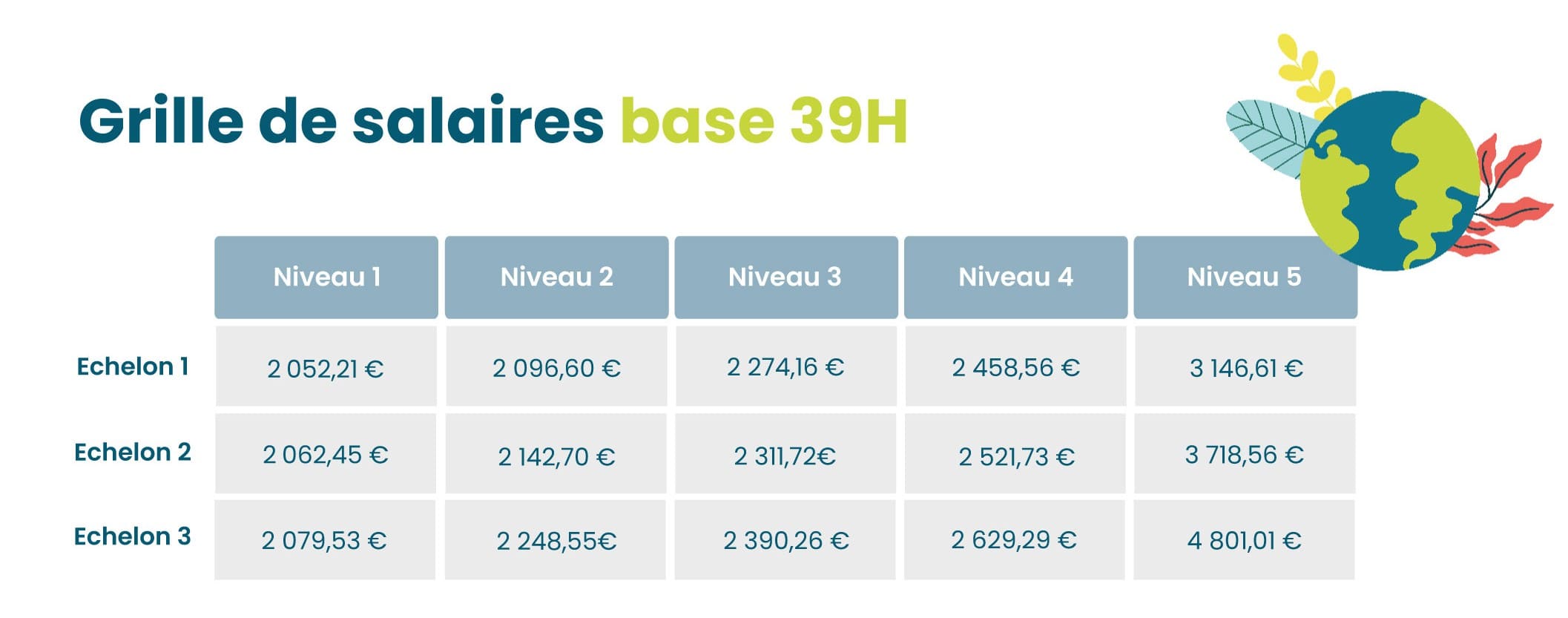 Découvrez la grille de salaire par niveau et par échelon sur la base 39h brut.